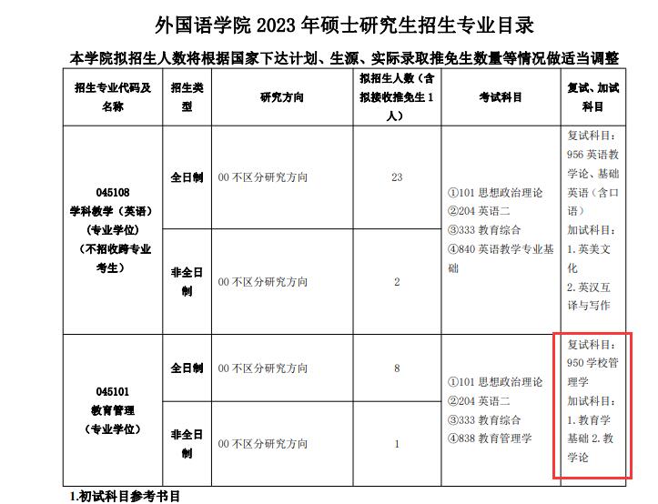 众学简快为各位考研党提供各院校最新最全的心理学考研院校考情,今天,我们一起来看看2023年吉林农业大学心理健康教育专硕拟招收人数与考试科目吧~ 根据吉林农业大学研究生院发布的《吉林农业大学2023年硕士研究生招生专业目录》显示,2023年吉林农业大学心理健康教育专硕未公布拟招收人数,不区分研究方向。 考试科目 (1)初试科目 ①101 思想政治理论;②204 英语二;③333 教育综合;④838 教育管理学 (2)复试科目:950学校管理学 附:吉林农业大学2023年硕士研究生招生专业目录 https://yjsy.jlau.edu.cn/news.php?nid=274 以上就是小编为大家整理的2023年吉林农业大学大学心理健康教育专硕拟招收人数与考试科目,更多院校考情欢迎进入前往众学简快官网,获得最详细的招生数据。心理学考研辅导报考咨询可添加简小君QQ:2853793598,更多心理学考研学习知识、心理学考研备考资讯,请关注“简快心理学考研”微信公众号! 想要了解更多内容请关注我们 众学简快:www.jkkaoyan.com 简快网校:www.jkclass.cn 新浪微博:@众学简快 B站:众学简快心理学考研 公众号:简快心理学考研 小红书:众学简快心理学考研 |