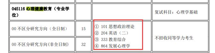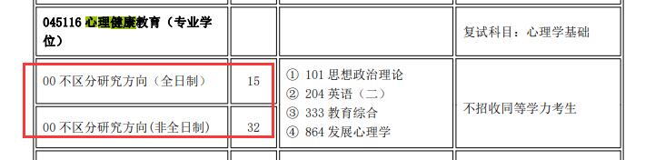 众学简快为各位考研党提供各院校最新最全的心理学考研院校考情,今天,我们一起来看看2023年山西大学心理健康教育专硕拟招收人数与考试科目吧~ 根据山西大学发布的《山西大学 2023 年硕士研究生招生目录》显示,2023年山西大学心理健康教育专硕拟招28人,全日制15人+非全日制32人。不区分研究方向。 考试科目 (1)初试科目 以上就是小编为大家整理的2023年山西大学心理健康教育专硕拟招收人数与考试科目,更多院校考情欢迎进入前往众学简快官网,获得最详细的招生数据。心理学考研辅导报考咨询可添加简小君QQ:2853793598,更多心理学考研学习知识、心理学考研备考资讯,请关注“简快心理学考研”微信公众号! 想要了解更多内容请关注我们 众学简快:www.jkkaoyan.com 简快网校:www.jkclass.cn 新浪微博:@众学简快 B站:众学简快心理学考研 公众号:简快心理学考研 小红书:众学简快心理学考研 |