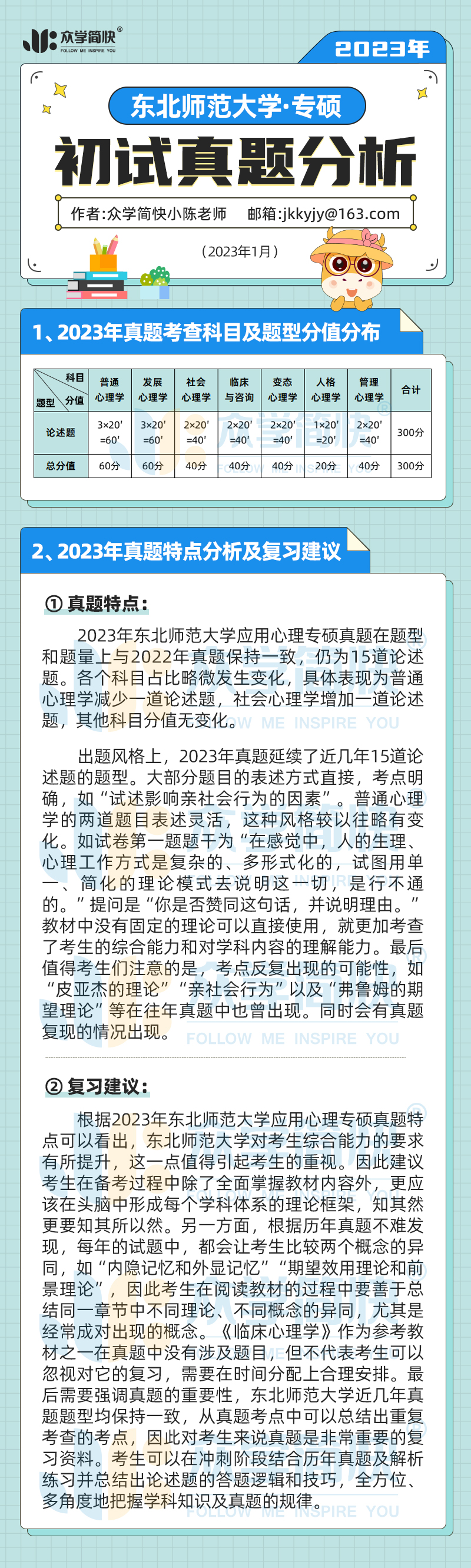 23年东北师范大学应用心理专硕初试真题分析及复习建议