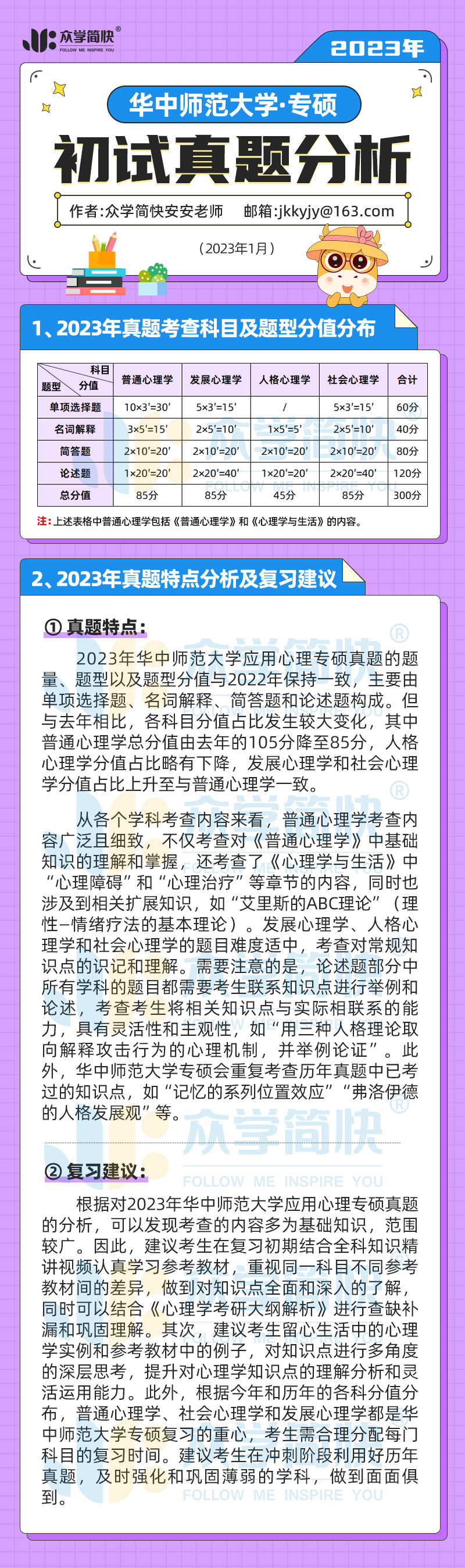 23年华中师范大学应用心理专硕初试真题分析及复习建议