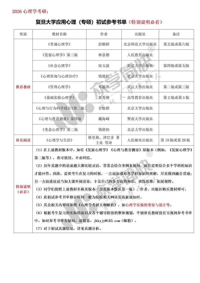 复旦大学应用心理(专硕)考研初试参考书单_复旦大学专硕_考研干货_众学简快官网-专注心理学考研,圆你名校梦-考研人帮考研人,我的今天你的明天
