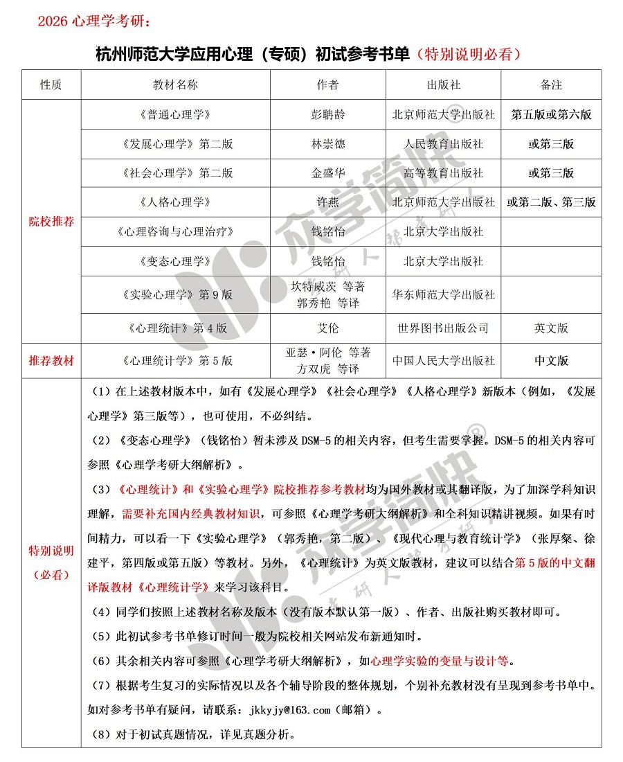 杭州师范大学应用心理(专硕)考研初试参考书单_杭州师范大学专硕_考研干货_众学简快官网-专注心理学考研,圆你名校梦-考研人帮考研人,我的今天你的明天