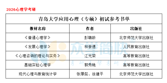 青岛大学应用心理(专硕)考研初试参考书单_青岛大学专硕_考研干货_众学简快官网-专注心理学考研,圆你名校梦-考研人帮考研人,我的今天你的明天