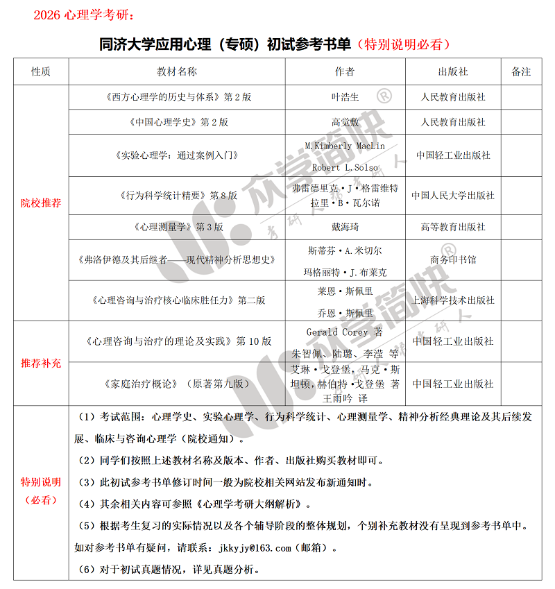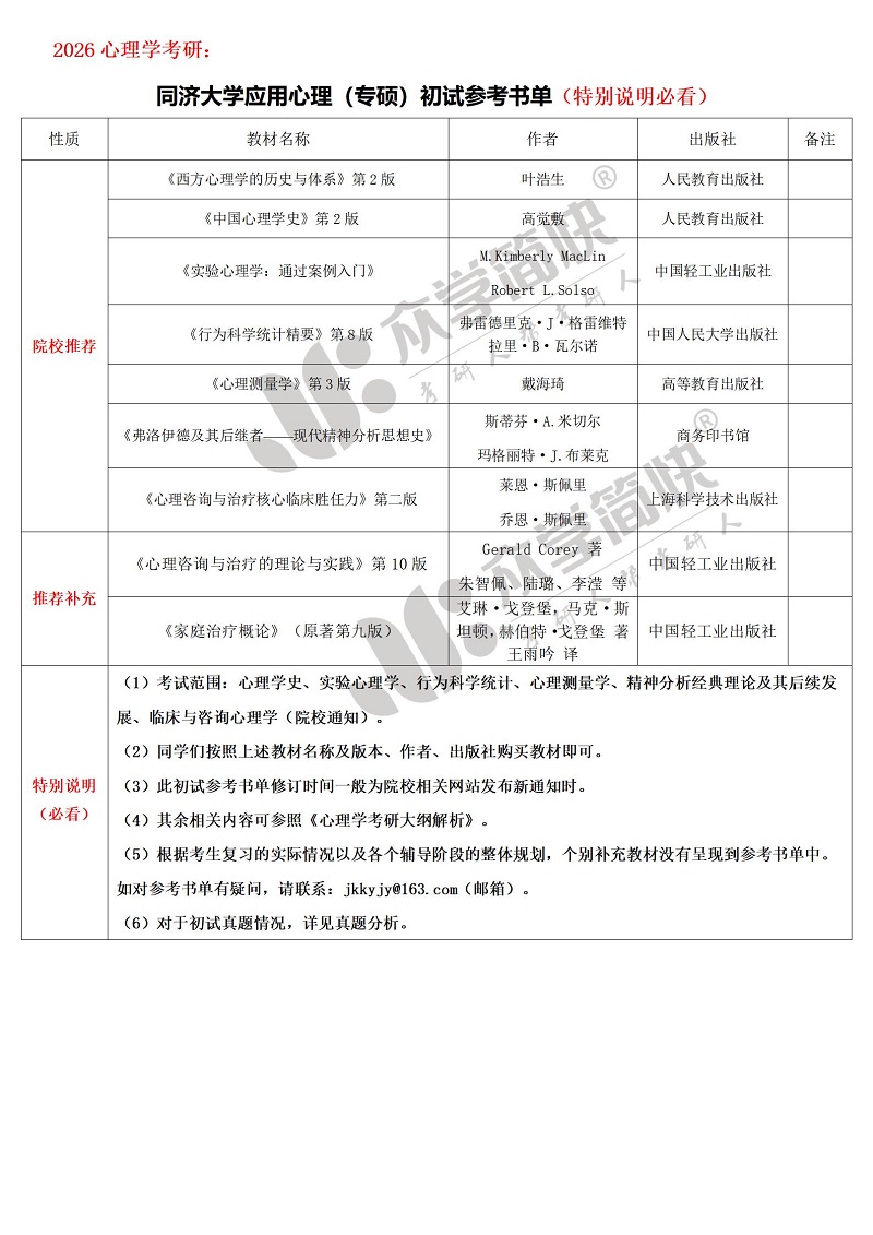 同济大学应用心理(专硕)考研初试参考书单_同济大学专硕_考研干货_众学简快官网-专注心理学考研,圆你名校梦-考研人帮考研人,我的今天你的明天