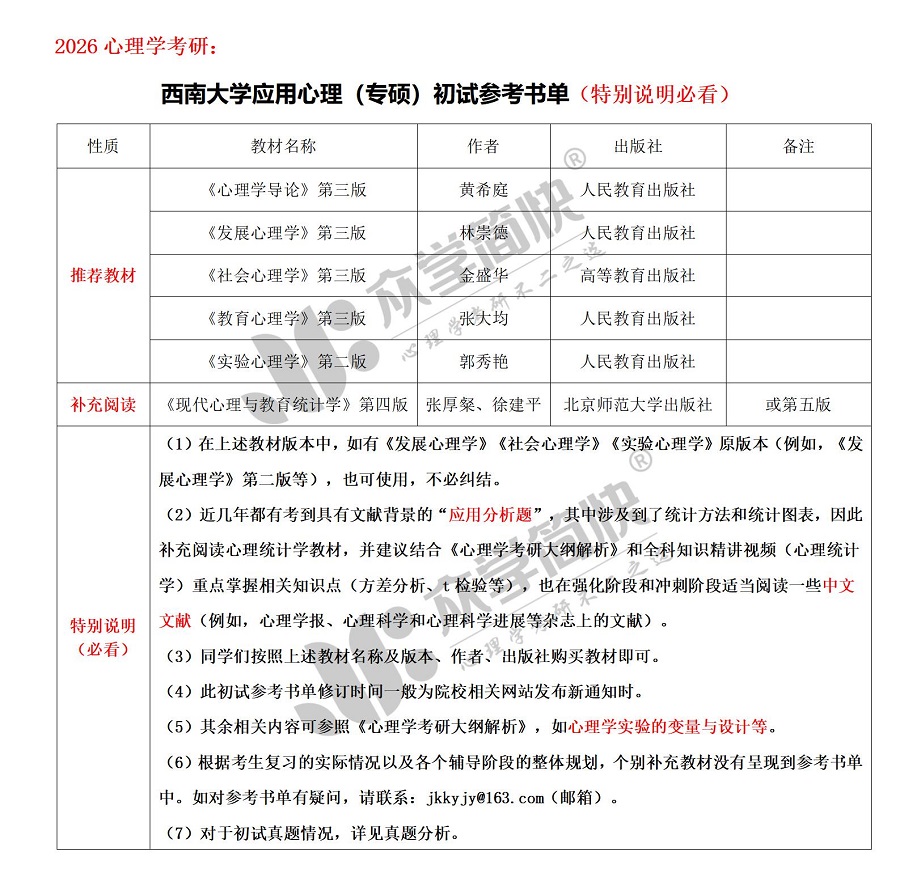 西南大学应用心理(专硕)考研初试参考书单_西南大学专硕_考研干货_众学简快官网-专注心理学考研,圆你名校梦-考研人帮考研人,我的今天你的明天