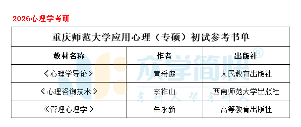 重庆师范大学应用心理(专硕)考研初试参考书单_重庆师范大学专硕_考研干货_众学简快官网-专注心理学考研,圆你名校梦-考研人帮考研人,我的今天你的明天