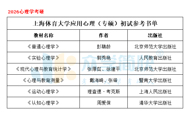上海体育大学应用心理(专硕)考研初试参考书单_上海体育大学专硕_考研干货_众学简快官网-专注心理学考研,圆你名校梦-考研人帮考研人,我的今天你的明天