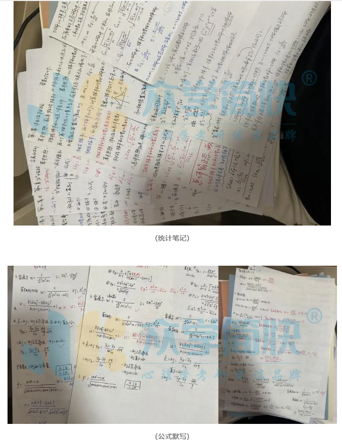 对于统计公式,我采用反复默写,反复纠正的方法,基本上默写三次并进行不间断的回顾,就可以记忆的很牢固了。我也运用同样的方法进行了测量的学习,效果也非常好。