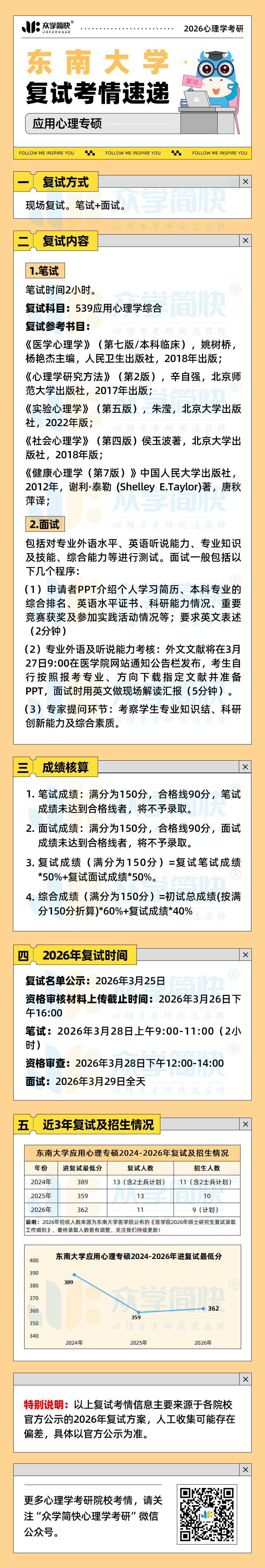 26心理学考研 | 东南大学应用心理专硕复试考情速递_东南大学专硕_院校考情_众学简快官网-专注心理学考研,圆你名校梦-考研人帮考研人,我的今天你的明天