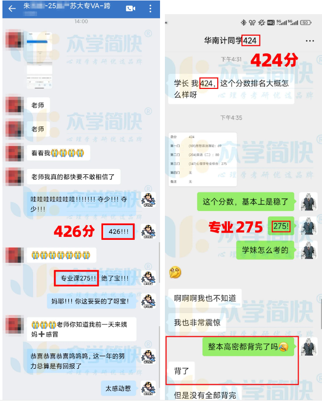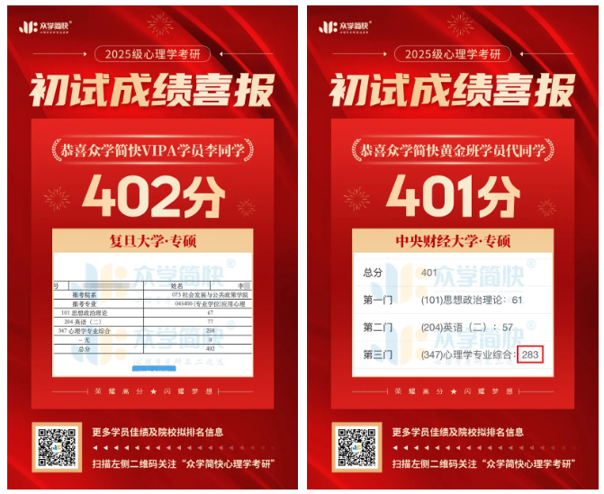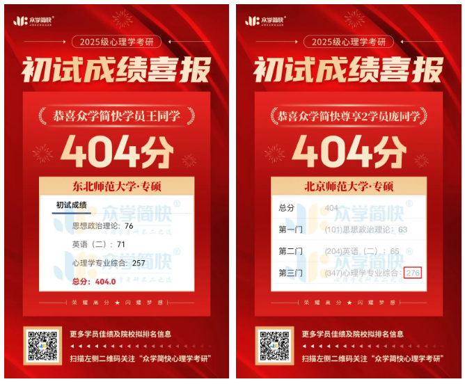 今年最高分444分的捷报传来 小萌和老师们都激动得热泪盈眶 当然除了最高分 也是被400+高分疯狂刷屏的一天! 简快的学员们用一份份亮眼的成绩单 诠释了什么是“天道酬勤” 小萌在这里 向所有取得优异成绩的同学表示衷心的祝贺! 你们的努力值得这份荣耀! 还没查分的/26考研er快去评论区吸这波欧气‼ 简快400+高分榜 每一份高分的背后 都离不开学员们的努力 也离不开简快的专业支持 从精准的课程体系到贴心的督学服务 从一对一指导到高质量的模拟题 简快始终陪伴在每一位学员的身边 助力大家圆梦心理学考研 初试只是开始,接下来还有复试、选导师、读研等一系列挑战。简快将继续为每一位学员提供专业的上岸支持,助力大家从梦想到现实,一路高歌猛进! 复试班戳这里了解 当然,小萌也知道,并不是每一位同学都取得了理想的成绩。但请记住,考研只是人生中的一个阶段,而不是全部。没考好并不代表你不够优秀,未来的路还很长,只要你愿意努力,梦想终会实现!