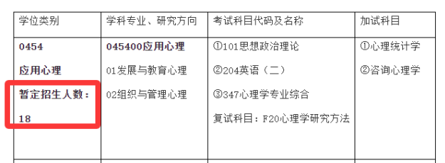 (1)初试科目:[101]思想政治理论;[204]英语二;[347]心理学专业综合;