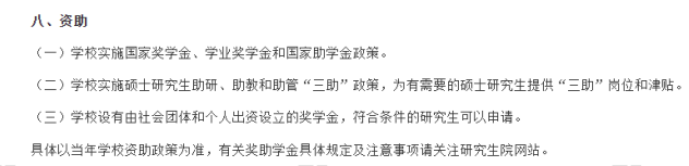学校实施国家奖学金、学业奖学金和国家助学金政策;设立硕士研究生助研、助教和助管“三助”政策,为有需要的硕士研究生提供“三助”岗位和津贴。设有由社会团体和个人出资设立的奖学金,符合条件的研究生可以申请。