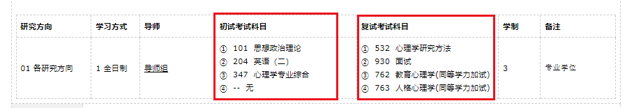 (1)初试科目:[101]思想政治理论;[204]英语二;[347]心理学专业综合;