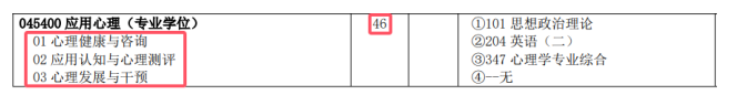 招生方向为:01心理健康与咨询;02应用认知与心理测评;03心理发展与干预。