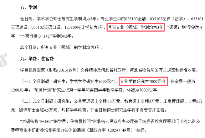 河北师范大学应用心理专硕全日制学制3年,学费为7000元/年。