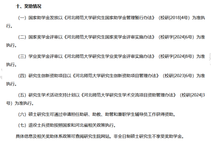 河北师范大学设有国家助学金、国家奖学金、学业奖学金等相关奖助,具体信息及奖助体系政策可查阅河北师范大学研究生院网站: