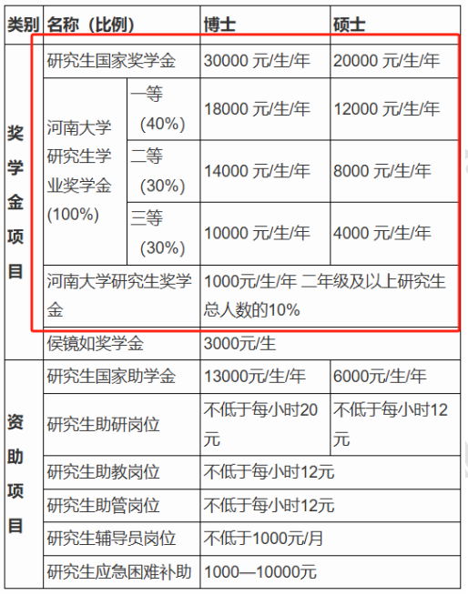 研究生学业奖学金:一等学12000元/生/年(40%),二等8000元/生/年(30%),三等学业奖学金为4000元/生/年(30%),100%覆盖