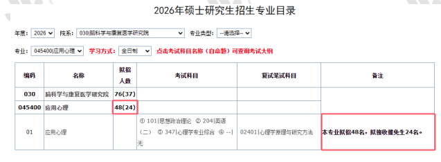 脑科学与康复医学研究院应用心理专硕2026年计划招收48名全日制研究生,拟接收推免生24名。初试不区分研究方向。