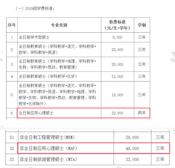 华南师范大学应用心理专硕全日制学制2年,学费为22500元/生·学年。