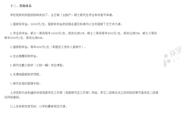 华南师范大学奖助体系包含国家奖学金、学业奖学金、国家助学金、社会资助奖助学金、研究生“三助”岗位津贴、国家助学贷款、研究生特殊困难补助及其他奖助政策。其中国家助学金为每年6000元/生(有固定收入者除外)。