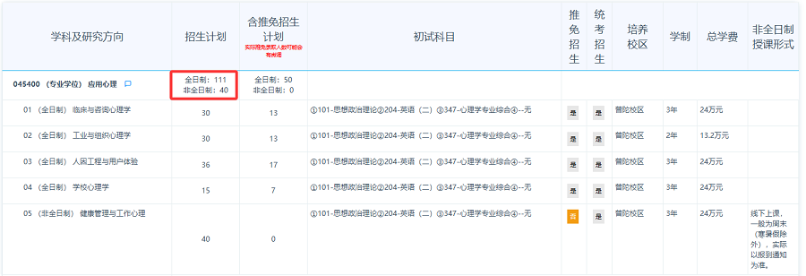 01 (全日制)临床与咨询心理学 学制3年,总学费24万元。