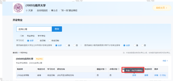 根据研招网数据显示,南开大学社会学院应用心理专硕2026年计划招收49名(不含推免)非全日制研究生。初试不区分研究方向。