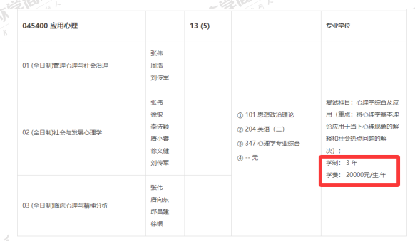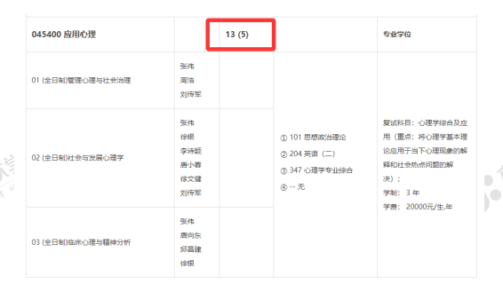招生方向为:01 (全日制)管理心理与社会治理,02 (全日制)社会与发展心理学,03(全日制)临床心理与精神分析。
