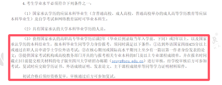2. 四川大学2024年硕士研究生招生考试考生进入复试的初试成绩基本要求