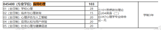 (1)初试科目:[101]思想政治理论;[204]英语二;[347]心理学专业综合;