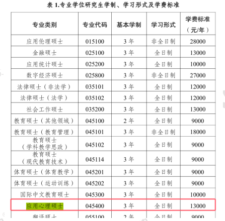 西南大学应用心理专硕全日制学制3年,学费为13000元/生·年。