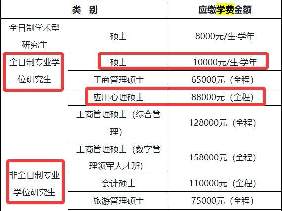 浙江工商大学应用心理专硕学制2.5年,全日制学费为10000元/·学年,非全日制学费为88000元(全程)。