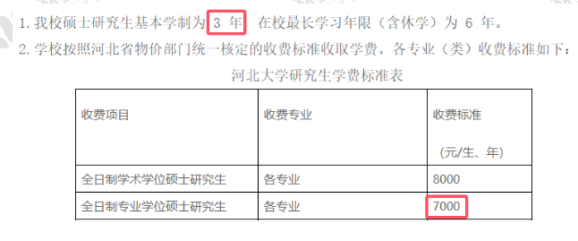 河北大学应用心理专硕学制3年,学费为7000元/年。
