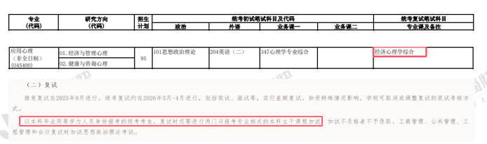 (1)初试科目:[101]思想政治理论;[204]英语二;[347]心理学专业综合;
