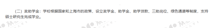 学校根据国家和上海市的政策,设立奖学金、助学金、助学贷款、三助岗位、绿色通道等制度,支持硕士研究生完成学业。